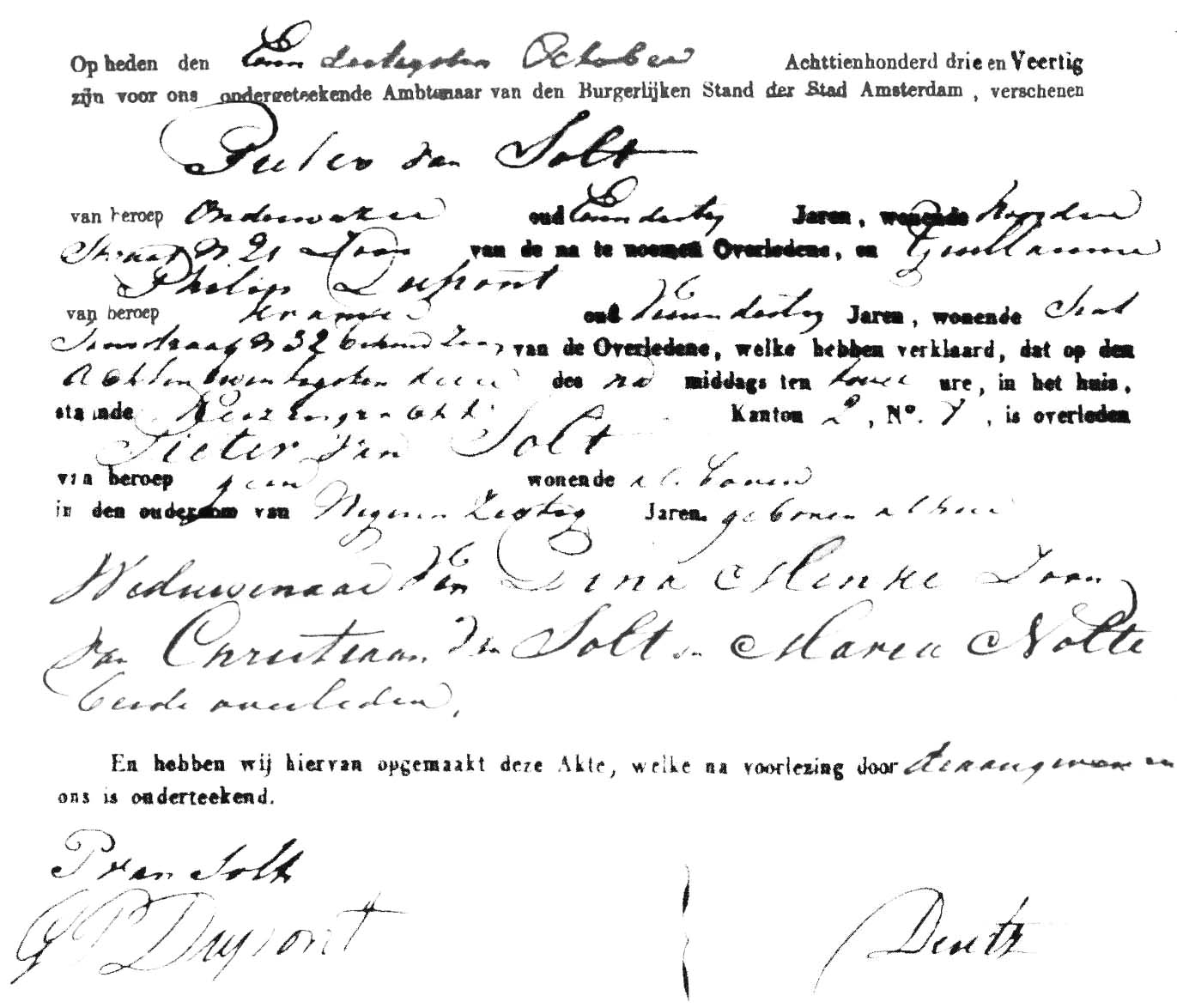 , zoon van Christiaan van Solt en Maria Hermans [Maria] Nolten. Hij is gedoopt op 2 november 1774 in Amsterdam in de Mozes en Aäronkerk [DTB 315 p.309 folio 155 nr 8].Huwelijk en kinderen